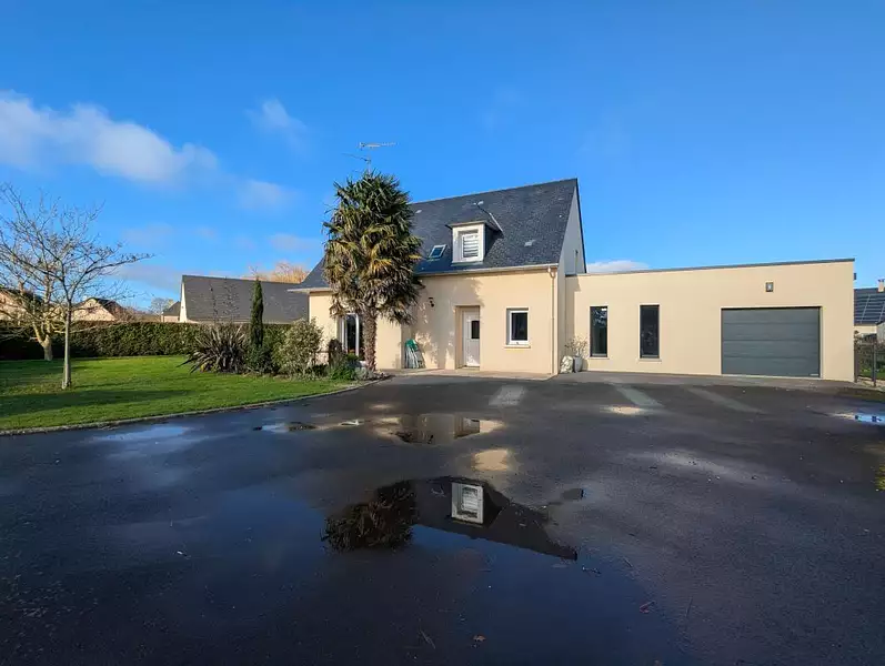 VAL D'ARRY - NOYERS BOCAGE : proche des commerces et écoles, à 15min de CAEN, maison contemporaine très bien entretenue avec VIE DE PLAIN PIED comprenant une entrée, séjour lumineux avec poêle à bois, triple exposition, cuisine aménagée et équipée, buanderie cellier, WC, une suite parentale de 30m² avec bureau, dressing et salle d'eau récente. Au 1er étage : 3 chambres spacieuses, salle de bain avec WC.