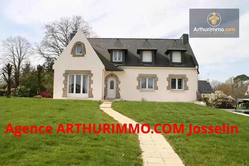 Exclusivite josselin centre maison 6 chambres avec terrain 2 800 m² en exclusivité, en centre-ville de josselin, dans un quartier très calme, belle néo bretonne de 169 m² hab., sur un très beau terrain clos de 2 800 m². maison très bien entretenue avec décoration récente (au rdc), comprenant au rez-de-chaussée, entrée sur couloir desservant cuisine aménagée et équipée, séjour avec terrasse exposée ouest, salon avec poêle à pellets, trois chambres, salle de bains récente avec placard, toilettes. a l'étage, couloir, placard, trois chambres, salle d'eau -toilettes et grenier. grand sous-sol avec garage, chaufferie, buanderie, bureau -placard et cave. proche commerce à pied. chauffage avec pompe à chaleur, maison raccordable au gaz de ville, terrain constructible. ref 1476 -