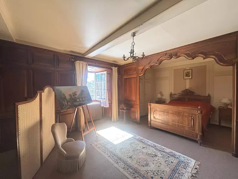 Elle comprend deux salles à manger, un salon d’été ouvrant sur une véranda lumineuse, une cuisine, quatre chambres dont trois suites parentales avec leur propre salle de bain et wc, un grenier, une buanderie et une cave. À l’extérieur, une ancienne écurie en pierre comprenant une chaufferie, ainsi qu’une grange, offrent de beaux volumes et de nombreuses possibilités d’aménagement.