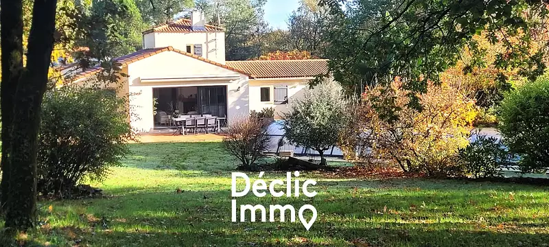 EXCLUSIVITÉ DÉCLIC IMMO - Située à Moutiers-les-Mauxfaits, bourg vivant et convivial du Sud-Vendée, cette propriété rare sur le marché allie calme, espace et proximité. Vous profiterez de toutes les commodités à pied : commerces, marché hebdomadaire réputé, écoles, services de santé Et pour vos envies d'océan, les plages de Longeville, Jard et La Tranche sont à seulement 17 minutes Et si c'était votre havre de paix ? Imaginez Vous franchissez le portail électrique, et découvrez un écrin de verdure à l'abri des regards. Le chant des oiseaux, le parfum des arbres, et au bout de l'allée, une élégante villa prête à accueillir votre famille. Un cœur de maison lumineux Le séjour avec cheminée insert s'ouvre par une large baie vitrée offre une vue sur la terrasse et la piscine exposée plein sud. La cuisine, moderne et entièrement équipée, devient le point de ralliement pour partager vos repas en famille ou entre amis. Un espace nuit pensé pour chacun Cinq chambres avec rangements et accès extérieur, un bureau, une salle de bain et une salle d'eau. À l'étage, un coin boudoir/bibliothèque pour savourer vos moments de calme. Un côté pratique et indépendant Arrière-cuisine, cellier, cave, un grand bureau avec entrée autonome pour travailler depuis chez vous, et deux garages totalisant 65 m² pour vos véhicules et projets. Le plus : son espace extérieur avec + de 3 000 m² de parc arboré et paysagé, vous profiterez d'une piscine 10x5 m avec dôme, de terrasses baignées de soleil, d'un cabanon bois de 15m². Si vous recherchez une maison familiale aux volumes généreux, dans un cadre verdoyant et préservé, au cœur d'une commune dynamique et accueillante, ayez le Déclic. Réf 2613. DECLIC IMMO 85 DPE : D Annonce proposée et rédigée sous la responsabilité éditoriale de FAVREAU Damien - 06 22 76 18 27 - Honoraires : 24 975 € TTC (5,55 %) inclus charge acquéreur (450 000 € hors honoraires) Montant estimé des dépenses annuelles d'énergie pour un usage standard : entre 2 680 € et 3 690 € par an.Prix moyens des énergies indexés sur les années 2021 2022 2023 (abonnement compris). Les informations sur les risques auxquels ce bien est exposé sont disponibles sur le site Géorisques : www.georisques.gouv.fr.