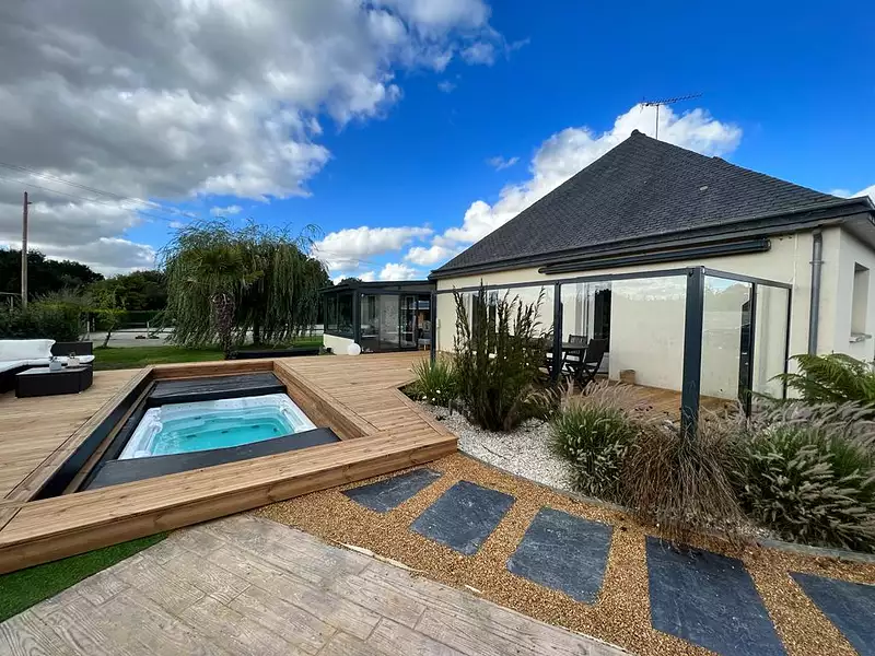 Maison contemporaine d'environ 170 m², édifiée sur un terrain d'un hectare. Elle se compose d'une entrée, salon-séjour avec foyer fermé, cuisine aménagée et équipée, véranda avec poêle à granulé, grande chambre, pièce bureau/dressing, salle d'eau et wc indépendant. Garage avec espace buanderie. A l'étage, palier desservant 2 grandes chambres, un bureau, un dressing, une salle d'eau et wc indépendant. Côté extérieur : véritable coin de paradis à l'abri des regards. Vous serez séduit par la terrasse de 100 m² recouvrant un jacuzzi et exposée sud-ouest, accessible depuis les pièces de vie, le confort absolu. Concernant les installations équestres, vous trouverez une carrière avec éclairage, paddocks, 3 boxs et une salle de soin. La propriété est desservie par deux entrées distinctes avec portail motorisé. Etang privatif, dépendance avec carport à camping car, carport véhicule et garage d'environ 42 m² avec coin atelier. Idéal pour les amoureux d'équitation. Ce bien vous permet d'associé votre passion et de disposer de toutes les commodités et services à proximité. (4.47 % honoraires TTC à la charge de l'acquéreur.)