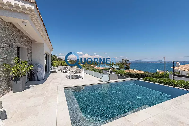 Villa contemporaine rénovée en 2022 avec appartement indépendant sans aucun vis à vis, vue mer panoramique à quelques minutes à pied des plages.