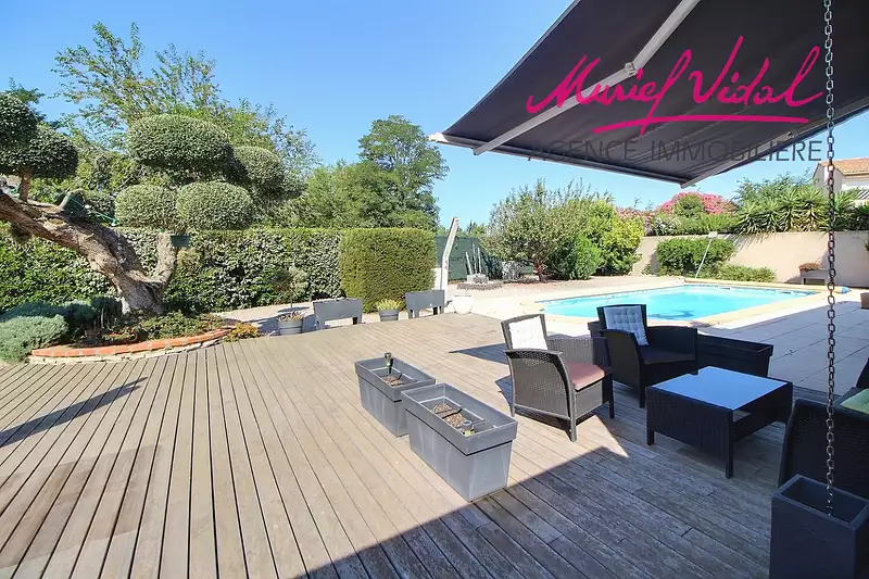 SAINT CYPRIEN PLAGE - Cette villa d'architecte d'une surface de 169 m2 se situe dans un environnement privilégié, vous disposerez d'un vaste salon/séjour, cuisine équipée et aménagée, salle de bains, 3 chambres dont une suite parentale au rez-de-chaussée. Possibilité d'une 4ème chambre en mezzanine. Une spacieuse véranda de 36 m2 donnant sur un jardin arboré où vous profiterez d'une piscine de 10 x 4 m.