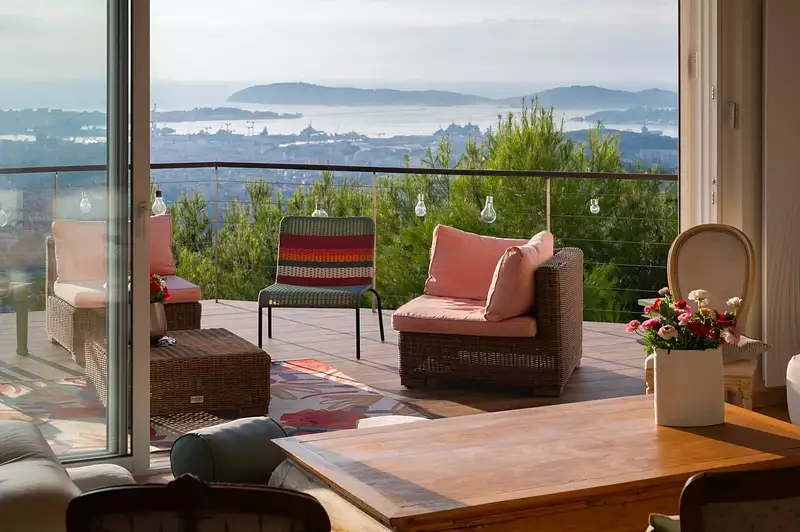 Nichée sur les hauteurs de Toulon Ouest, dans un environnement paisible et résidentiel, cette villa d’environ 169 m² habitables est implantée sur une parcelle de 1 116 m² et offre une vue imprenable sur la rade de Toulon et ses environs.