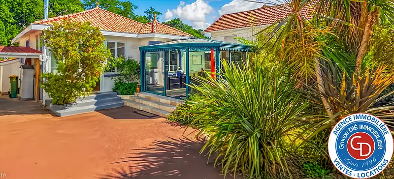 A Arcachon entre le quartier de l'Aiguillon et de la Ville d'Automne, le Groupe DIÉ IMMOBILIER a l'honneur de vous présenter un ensemble immobilier composé d'une villa principale avec 3 chambres et une dépendance au fond du jardin, édifé sur une parcelle de terrain de 713 m2 piscinable. Le tout situé au calme, proche des commerces, des plages, des établissements scolaires de toutes les activités. Chauffage central gaz, double vitrage, belle exposition ensoleillée, portail automatique. Villa principale (environ 137 m2) : Entrée, séjour / salon avec poêle à bois, cuisine ouverte aménagée et équipée, véranda chauffée, buanderie, chambre 1, chambre 2 avec salle de bains et coin dressing, wc indépendant, chambre 3 avec salle d'eau et dressing. Dépendance (environ 33 m2) avec entrée indépendante : Petite maison avec séjour, cuisine ouverte, 2 chambres (dont 1 petite). D'autres photos, ainsi qu'un descriptif détaillé et complet du bien sont à votre entière disposition sur simple demande. Groupe DIÉ IMMOBILEIR - Guillaume DIÉ - 06 86 28 96 72 -