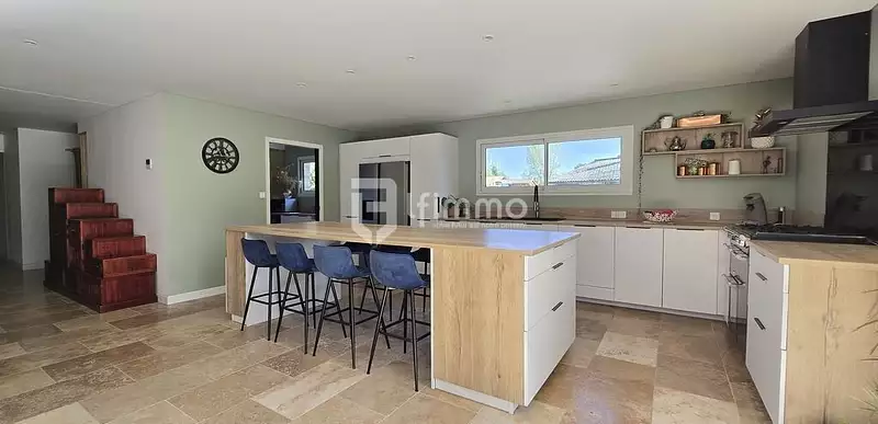 Grâce à une rénovation courant 2023, la maison bénéficie aujourd'hui d'une climatisation réversible, d'un carrelage en pierres naturelles travertin et de nouvelles menuiseries sur la partie jour (dont baie vitrée à galandage).