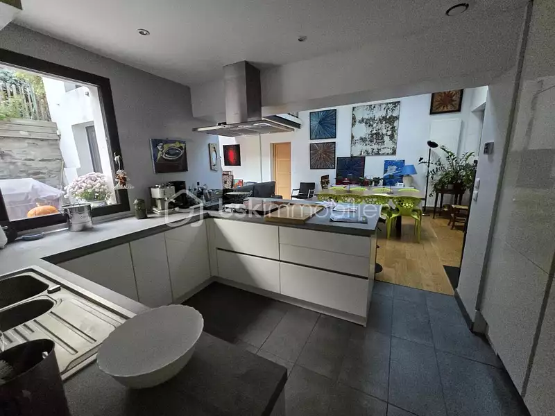 Magnifique maison rénovée avec raffinement. Une visite s'impose pour apprécier ses atouts et son potentiel. Elle comprend quatre chambres, dont une au rez-de-chaussée avec grand dressing et salle d'eau attenante. Un vaste espace de vie lumineux avec cuisine ouverte donnant sur une grande terrasse, un espace bureau, une mezzanine, une buanderie et un garage sont également présents. À l'extérieur, plusieurs espaces sont aménagés (jeux, atelier, piscine, parking). Vidéos disponibles.