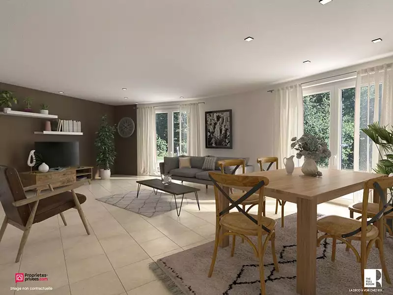 LES PORTES-DU-COGLAIS / LA SELLE-EN-COGLES (35460) - Maison 5 pièces, 4 chambres. Prix : 467.000 euros. Honoraires : 3,55% TTC inclus à la charge de l'acquéreur, soit 451.000 euros hors honoraires. Sur une surface habitable de 170 m2, cette maison de plain-pied réunit judicieusement une conception et une construction très soignées, la modernité, l'espace, la luminosité, l'économie d'énergie, tout en associant le calme de son environnement et une situation géographique attrayante permettant d'accéder à l'A84 en 3 minutes. L'entrée avec placard dessert le vaste séjour, une première chambre avec salle-de-douches et un wc séparé. Ce très grand séjour avec deux double-portes vitrées baigne de lumière. Il s'ouvre sur la terrasse plein sud. La cuisine aménagée et équipée se trouve dans le prolongement de la pièce de vie et sa fenêtre laisse généreusement rentrer la lumière. L'espace nuit comprend trois chambres, chacune étant dotée d'un grand placard. A proximité et toujours dans un concept spacieux une salle-de-douches comporte deux vasques. L'arrière-cuisine faisant également office de buanderie permet d'accéder au garage attenant d'une surface de plus de 100 m2. Il comprend naturellement un coin atelier et son grenier offre un grand volume de rangement. VMC double flux, sonorisation et connexions internet ont fait l'objet d'un soin particulier pour un confort optimal. Idéal télétravail avec la fibre optique. Cette spacieuse maison peut recevoir une véranda ainsi qu'une piscine. Aire de stationnement. La parcelle s'étend sur 4.946 m2. Ce bien atypique et d'exception se trouve à une trentaine de minutes de Rennes et une vingtaine d'Avranches grâce à l'A84.
