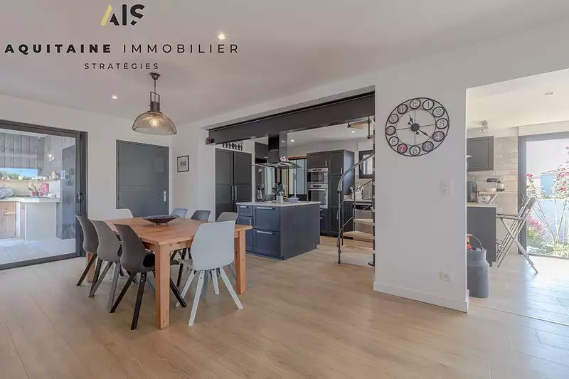 AQUITAINE IMMOBILIER STRATEGIES - NOUVEAUTE - FOURAS - MAISON T5/6 170 M² - PARCELLE 329 M² - VUE MER A L ETAGE. Notre agence vous propose à la vente cette somptueuse maison de type T5/6 intégralement rénovée, située dans la commune de Fouras. Elle se situe à proximité immédiate de l'océan et bénéficie d'une vue mer à l'étage. Cette maison se compose d'une magnifique pièce de vie (cuisine ouverte sur salon) lumineuse et traversante avec cheminée centrale, de 4 chambres aux beaux volumes avec rangements , d'une salle de bain et d'une salle d'eau. Vous profiterez également d'une magnifique terrasse au calme avec espace plancha/barbecue. Un autre espace extérieur en bois exotique est à votre disposition avec rangements et espace balnéo. Un carport vient compléter la prestation de cette magnifique maison à proximité des toutes commodités utiles. VUE MER A L ETAGE, PLAGES A PROXIMITE IMMEDIATE, RENOVATION ET MATERIAUX DE QUALITE. CHEMINEE CENTRALE. AQUITAINE IMMOBILIER STRATEGIES Mr PORTRON Laurent Directeur Agence AQUITAINE IMMOBILIER STRATEGIES Adresse : GARE DE BORDEAUX SAINT JEAN PAVILLON NORD PARVIS LOUIS ARMAND CS 21912 33082 BORDEAUX CEDEX 33800 BORDEAUX RCS N° 821229291 SARL au capital de 1000 euros - Immatriculée au RCS de Bordeaux - SIRET N° 821 229 291 00025 - Carte Professionnelle Transaction : CPI 3301 2016 000 009 960 Délivrée par : Bordeaux Le 12/07/2022 Garant : GALIAN 89, Rue de la Boétie 75008 PARIS Garantie : Transaction Sans maniement de fonds