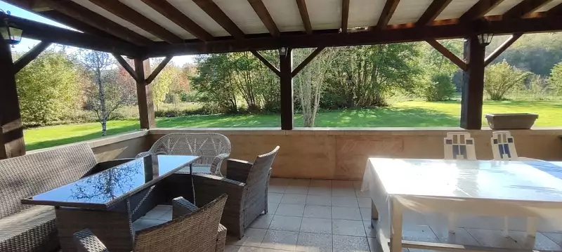 Secteur Lalinde et Beaumont du Périgord, Jolie maison de plain-pied à vendre, construction de l'année 2000 de 170 m² habitables en béton cellulaire, composée d'une grande pièce de vie lumineuse de 80m², une belle et agréable terrasse couverte, une cuisine équipée, 3 chambres entre 12 et 20 m², une salle d'eau, wc séparé.