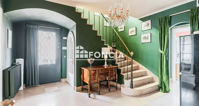 Elle se compose au rez-de-chaussée d'une vaste entrée, d'un salon/séjour lumineux aux beaux volumes, d'une cuisine indépendante ouvrant sur un jardin arboré sans vis-à-vis, ainsi que de toilettes séparées.