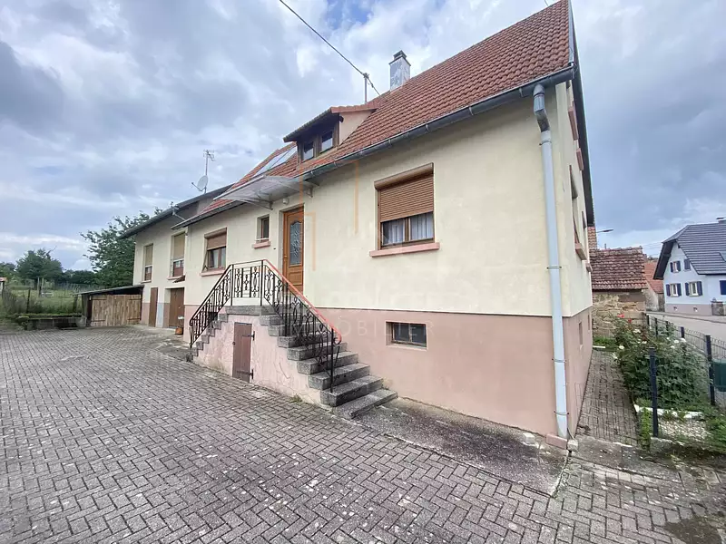 À Riedseltz, dans une rue non passante venez découvrir cette maison individuelle d'une surface de 170 m² habitables implantée sur une parcelle de 415 m² et accompagné d'un espace vert de 350 m².