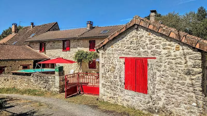 Dans un hameau calme: maison en pierre comprenant au rez-de-chaussée: une cuisine, une salle à manger, salon, chambre de plain-pied suitée. Au premier: 2 chambres et une salle d'eau. Un autre escalier mène vers une 4ième chambresdb. Cour avec jardin et terrain de 1300m² non attenant et en bordure de rivière. Piscine hors-sol. Proposition d'aménagement virtuel non contractuelle en dernière photo. Logement à consommation énergétique excessive : classe F
