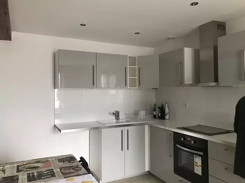 SAINT LAURENT DE COGNAC Maison de ville entièrement rénovée comprenant salon, cuisine aménagée et équipée neuve, salle de jeux, trois chambres, deux salles d'eau avec wc. Grand garage. A cinq minutes de Cognac.