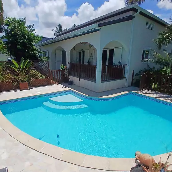 La villa dispose d'une piscine au sel de 4x9m mais surtout d'un jardin arboré de 456m2 avec diverses plantes et arbres fruitiers ( papaye, banane, citron, combava)