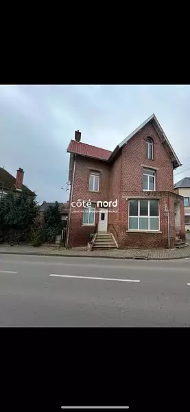 Solesmes: Maison en centre ville comprenant: entrée , cuisine équipée avec coin repas, salon avec cheminée type insert feu de bois, séjour, salle de bains avec wc , cave.