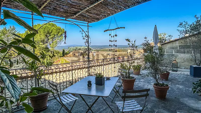 A quelques minutes d'Uzès, dans l'un des plus beaux villages de l'Uzège, coup de coeur pour cette jolie maison de village d'environ 170 m2 avec trois belles terrasses offrant des vues inouies du village jusqu'au Mont Bouquet.