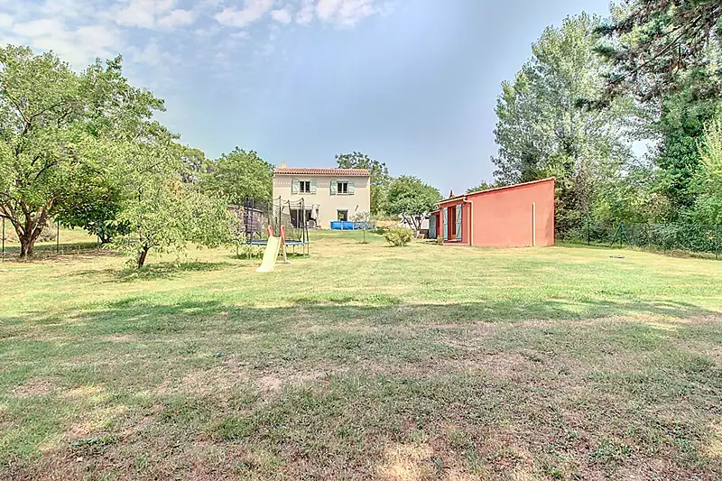 Succombez au charme de cette villa individuelle contemporaine construite en 2019, alliant confort moderne et cadre naturel privilégié. Nichée au coeur d'un terrain arboré d'environ 2 000 m², cette maison lumineuse et prête à vivre vous offre un environnement paisible, sans vis-à-vis, à quelques minutes seulement des trésors de la Provence Verte. L'habitation principale développe environ 120 m² habitables et se compose : D'une spacieuse pièce de vie d'environ 50m² baignée de lumière, avec cuisine américaine équipée De trois chambres confortables D'une salle d'eau moderne avec baignoire et douche De deux WC indépendants A l'extérieur, deux grandes terrasses vous invitent à profiter pleinement du climat méditerranéen. Le terrain plat permet l'installation d'une piscine, pour encore plus de convivialité. En bonus : un T2 indépendant d'environ 50 m², idéal pour recevoir ou envisager un revenu locatif saisonnier ou annuel. Un projet d'extension facile à envisager : possibilité de créer une suite parentale de plain-pied d'environ 20 m², pour un confort encore plus grand. Prestations : Climatisation réversible séjour et à l'étage Double vitrage Ballon thermodynamique Construction récente, aux normes Calme absolu et environnement verdoyant A savoir : Le marché immobilier de Villecroze reste une valeur sûre, prisée pour sa qualité de vie et son authenticité provençale. Ne laissez pas passer cette opportunité : contactez-nous dès maintenant pour organiser une visite.