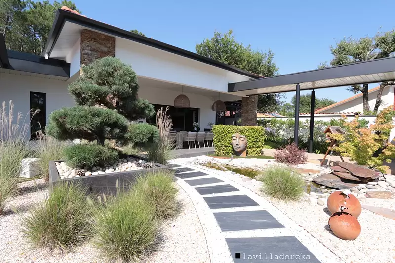 La Villa d'Oreka vous propose en exclusivité cette remarquable Villa de prestige, récemment bâtie en 2021 sur une parcelle paysagée d’environ 1200m2 sans aucun vis à vis faisant face à la forêt landaise.
