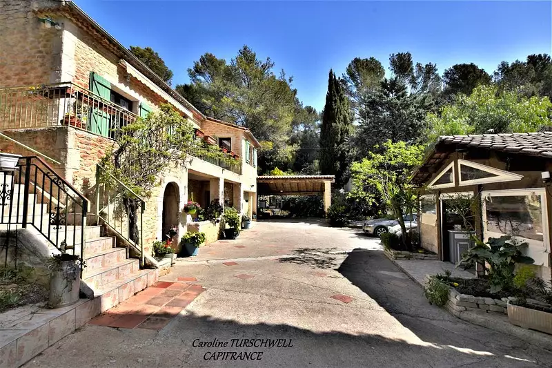 Cette villa, de style Mas provençal, conçue pour abriter une seule famille, est également aménagée pour deux appartements. Chacun a son entrée indépendante et peuvent communiquer par un escalier intérieur. Elle peut être aussi restructurée en une grande maison familiale avec une activité libérale ou artisanale.