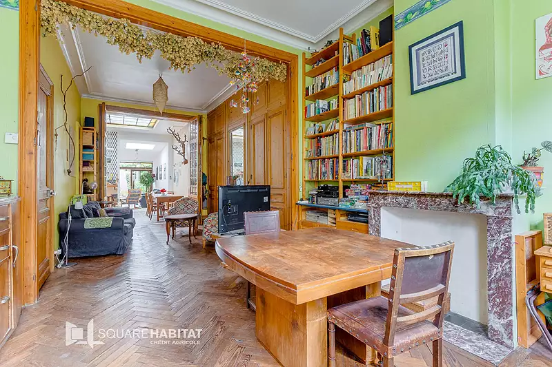 LARGE MAISON BOURGEOISE, déployant +170 m² habitables offrant un couloir d'entrée avec cage d'escalier, un séjour/salle à manger avec cheminée, une cuisine équipée avec espace repas, ainsi qu'un espace salon offrant une vue sur le jardin. Les étages sont composés de 4 grandes chambres et de 2 salles de bains. Une buanderie, une cave et un jardin clos et arboré avec espace potager et poulailler, ainsi qu'une terrasse bois complètent le descriptif de cette charmante maison. Son cachet d'époque tels que les parquets chevrons, carreaux de ciment, placards anciens, etc... ont été préservés. Situation de 1er ordre, proche d'un magnifique jardin public et du centre-ville. Vous serez séduits !!