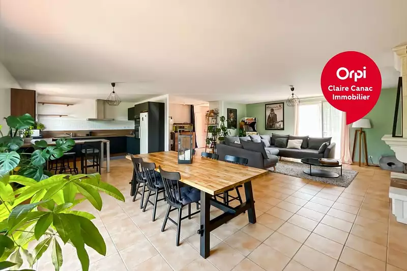 Dès l'entrée, vous serez séduits par les volumes généreux et la luminosité de la pièce de vie de plus de 65 m², avec cheminée insert bois, vous offrant un espace chaleureux et convivial, prolongé par une cuisine ouverte, moderne, aménagée et entièrement équipée.