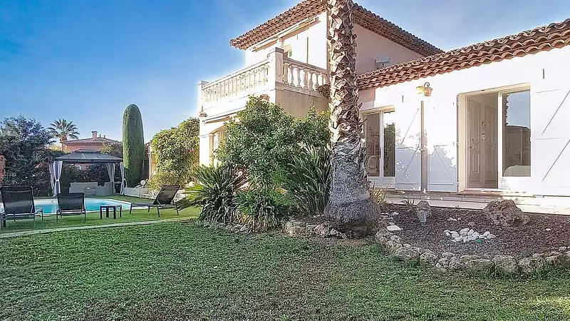 Dans un environnement résidentiel prisé de Saint-Raphaël, à proximité immédiate des commerces et des golfs, cette élégante villa développe environ 171 m² sur un terrain paysagé de 850 m². Conçue pour le confort et la convivialité, elle se compose d'un vaste espace de réception lumineux, d'une cuisine spacieuse, de deux chambres dont une suite parentale, d'une buanderie, d'une salle d'eau, et d'un garage. A l'étage, une belle suite avec salle d'eau et toilettes offre un espace intime pour les invités. Le sous-sol total, accessible indépendamment, abrite une cuisine d'été et de généreuses pièces annexes offrant des possibilités pour recevoir vos amis. Le jardin, parfaitement au calme et sans aucun vis-à-vis, s'agrémente d'une agréable piscine, invitant à la détente et aux moments de partage.