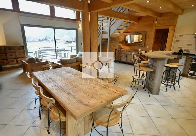 Belles prestations charme de l’ancien revisité L’alliance harmonieuse de matériaux nobles et de finitions modernes confère à ce chalet une ambiance chaleureuse, élégante et unique.