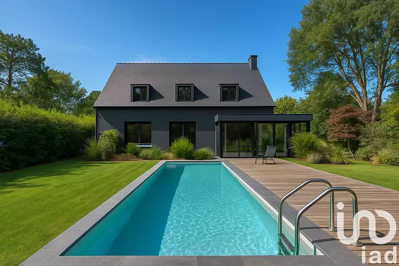 iad France - Lucie Jouan vous propose: À vendre, belle maison contemporaine de 172 m² habitables sur un terrain clos et arboré de 819 m², située dans un quartier très calme d’Arradon, sans aucun vis-à-vis.
