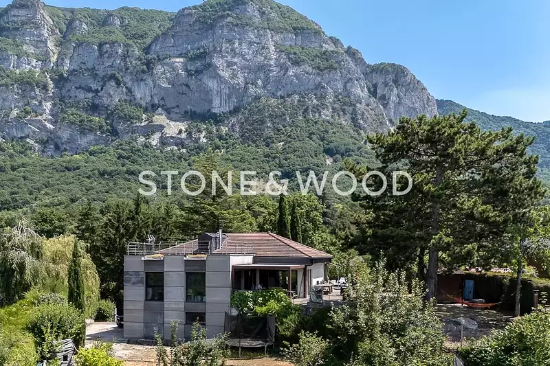 A seulement 10 minutes de Genève, cette propriété moderne située sur les hauteurs de Collonges-sous-Salève bénéficie d'un cadre de vie privilégié, au calme, sans vis-à-vis, avec des vues dégagées sur le Jura et Genève.
