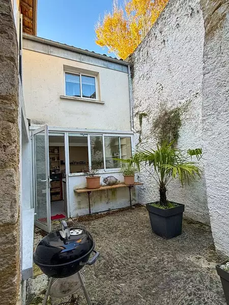 Les fenêtres donnant sur la rue à l'avant de la maison sont des fenêtres en bois typiques d'une maison traditionnelle de Lectoure, mais tout l'arrière de la maison a été ouvert sur le patio.Afficher plus