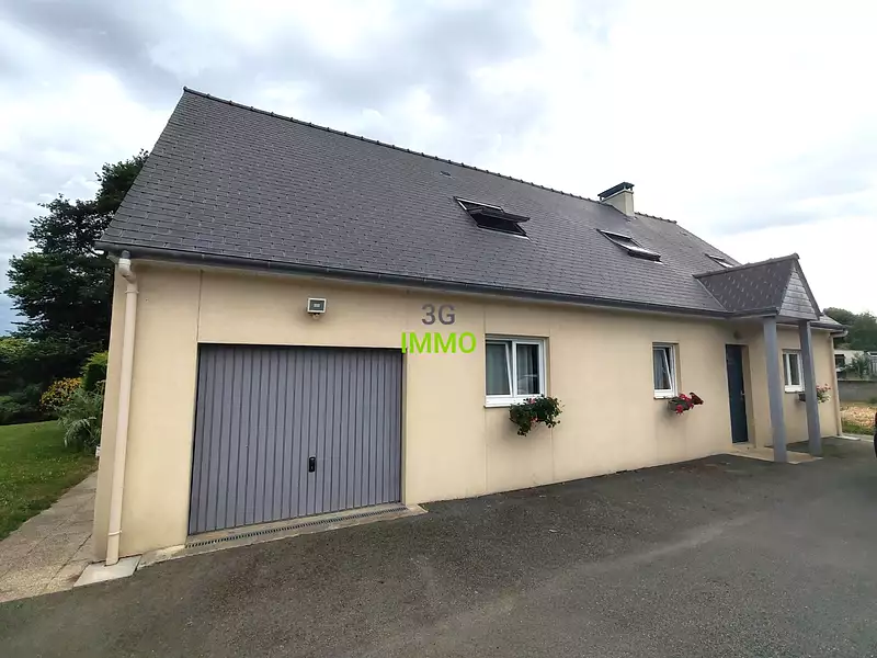 UNE EXCLUSIVITE 3G IMMO ! A vendre dans le bourg de Merdrignac , très belle maison de 2006 avec belles prestations offrant au RdC : entrée, grand séjour avec cuisine ouverte aménagée et équipée donnant sur une grande terrasse plein sud, arrière cuisine, lingerie, wc, garage, la partie nuit est désservie par un dégagement avec placards, 2 chambres, salle d'eau avec douche à l'italienne. Au 1er étage un grand degagement déssert 3 chambres, un bureau en mezzanine, une salle de jeu, une salle de bain, wc. Le tout sur un terrain d'envirpn 3073 m²avec une partie constructible déjà bornée et un grand double garage independant avec cave à vin et grenier. A VISITER RAPIDEMENT !
