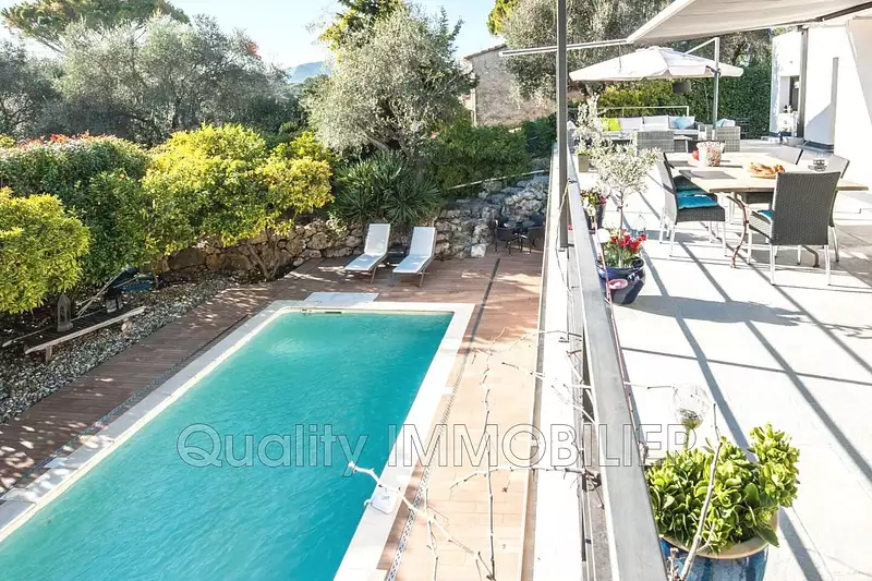 MOUGINS proche Croix des gardes, en position dominante au sein d'un quartier résidentiel, accès facile, aux Plages à la Croisette, Belle et grande Villa à L'esprit contemporain, lumineuse et entourée d'une végétation méditerranéenne mature qui s'étend sur 1 400 m² , agrémentée d'une belle piscine de 10 X 4 m, pour vous rafraichir.