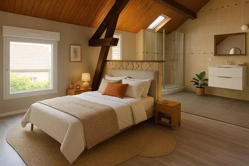 Étage : 3 chambres + suite parentale exceptionnelle de 33,5 m² avec baignoire, douche et WC privatifs.