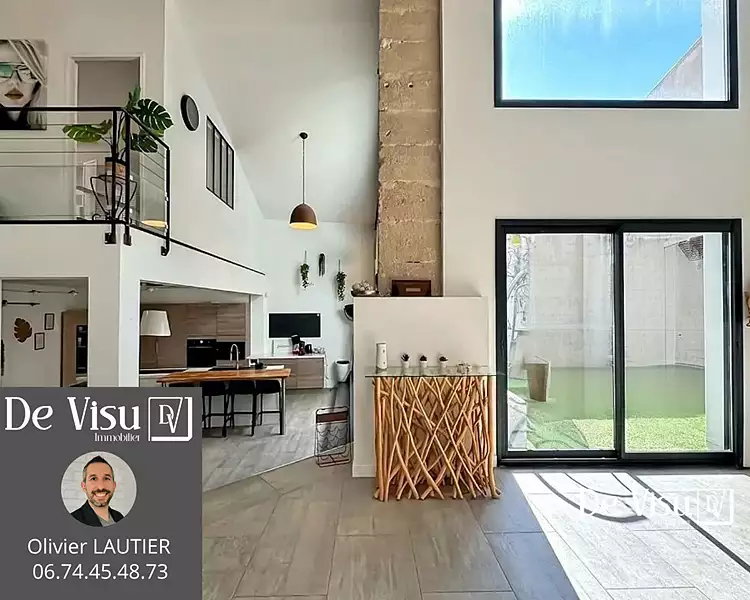LOFT 172m² Vidéo de présentation disponible Situé en plein coeur de Saint-Jean-de-Védas, ce superbe loft de 172 m² allie charme, confort et volumes généreux. La pièce de vie de 86 m², climatisée et baignée de lumière naturelle, se distingue par sa belle hauteur sous plafond qui lui confère une atmosphère à la fois chaleureuse et conviviale. La cuisine équipée, au design moderne et parfaitement intégrée, participe à l'harmonie des lieux. Une buanderie attenante vient parfaire le confort de cet espace d'exception. En rez-de-chaussée, vous profiterez d'une suite parentale de 22 m² avec dressing, salle d'eau et WC séparé. A l'étage, deux grandes chambres complètent l'espace nuit, accompagnées d'une salle d'eau et d'un deuxième WC. L'extérieur, aménagé avec soin, invite à la détente dans un espace cosy à l'abri des regards avec emplacement pour jacuzzi. Une place de stationnement privative sur la parcelle vient parfaire ce bien rare. Les atouts : Volumes et luminosité exceptionnels Equipement sur mesure et finitions soignées : climatisation, poêle, volets roulants électriques, portail électrique... Emplacement privilégié : proximité des commerces, du tram, des écoles et des Halles. Un bien unique, idéal pour les amoureux d'architecture contemporaine et de confort urbain. A découvrir sans tarder ! Contact au O6.74.45.48.73