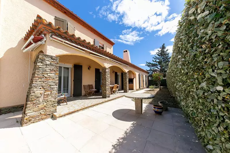 A deux minutes de CABESTANY et cinq minutes de PERPIGNAN, dans l'agréable village de SALEILLES. Située dans un quartier calme au fond d'une impasse proche de toutes les commodités . Villa d'architecte de construction traditionnelle totalisant 172m² habitables plus un garage sur une belle parcelle de presque 900m². Le bien est dans un état irréprochable, clim gainée, double vitrage, volets roulants, électricité refaite. Au rez de chaussée nous retrouvons une grande entrée, une belle pièce à vivre donnant sur la cuisine, deux chambres, une buanderie, une salle d'eau, un wc, des rangements et un garage. A l'étage un grand palier dessert deux chambres, une salle de bain, un wc et des combles. Produit de qualité, belle construction, idéal maison familiale.