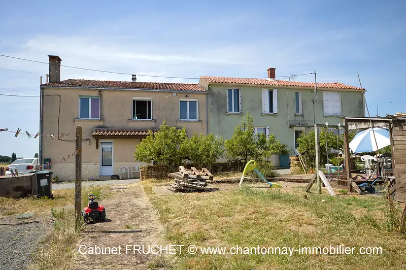 Réf 6660 - BAZOGES EN PARREDS - Maison de village, au calme, à 15 min de Chantonnay, d'environ 173 m2 avec un logement attenant d'environ 100 m2 pouvant faire office de logement locatif. Cet ensemble immobilier offrant plusieurs possibilités est composé de la manière suivante :