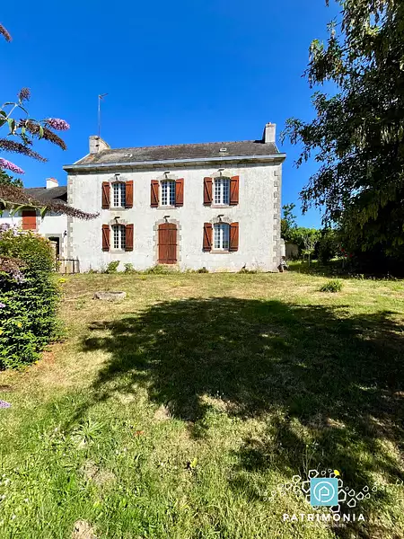RARE - PROPRIETE DE CARACTERE SITUEE DANS UN ENVIRONNEMENT BUCOLIQUE ET AU CALME. PROCHE DES COMMODITES ET NON LOIN DES PLAGES DU POULDU. Habitation en pierre avec de beaux volumes. Elle comprend au rez-de-chaussée: cuisine avec un espace dinatoire, arrière cuisine, couloir, salon-séjour, chambre, wc. A l'étage : couloir avec placards, trois chambres, salle de bains, wc. Chaufferie avec accès à l'étage à une pièce. Spacieux bâtiment en pierre attenant avec grenier. Edifiée sur un terrain de 6000 m² environ avec un hangar. A VISITER! (3.60 % honoraires TTC à la charge de l'acquéreur.)