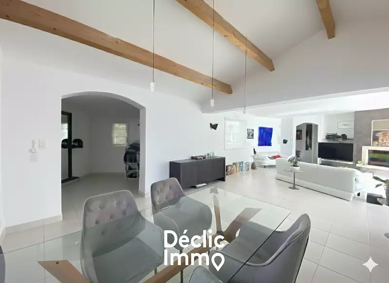Dans la commune de Dompierre sur Mer, à Chagnolet, à seulement 3 minutes de La Rochelle, cette maison de plain-pied construite en 2005 sur une parcelle d'environ 700 m2 offre un cadre de vie idéal. Avec une surface habitable de plus de 170 m2, cette maison spacieuse vous séduira par son confort et ses volumes généreux ainsi que par le calme environnant de la nature. Dès l'entrée, vous serez accueilli dans une belle pièce de vie lumineuse de plus de 48 m2, exposée plein sud et dotée d'une cheminée/insert. Cette pièce donne accès à une terrasse, idéale pour profiter des beaux jours. La cuisine aménagée et équipée ainsi que l'arrière-cuisine complètent cet espace convivial. La partie nuit se compose d'une chambre parentale avec salle de bains privative, dressing, bureau et toilette indépendant. Une deuxième partie nuit dessert trois chambres, dont deux avec placards, une salle d'eau et wc indépendant. Une des chambres dispose même de sa propre entrée indépendante, offrant la possibilité de la transformer en studio. En plus de ces espaces, la maison comprend un grand garage, un abri bois, un préau et un patio. Les points techniques tels que le double vitrage en aluminium, les volets électriques, la porte de garage électrique, le chauffage par le sol, ajoutent au confort de cette maison. Les 4 places de stationnement extérieures complètent les atouts de ce bien. En excellent état, cette maison est un véritable coup de cœur. Ne manquez pas l'opportunité de la visiter et de profiter de tous les avantages qu'elle offre à 2 pas du canal de Rompsay. Réf 5705. DECLIC IMMO 17 DPE : D Les informations sur les risques auxquels ce bien est exposé sont disponibles sur le site Géorisques : www.georisques.gouv.fr. Annonce proposée et rédigée sous la responsabilité éditoriale de BIDOT Marie-Blanche - 06 60 88 68 89 - - Honoraires : 19 000 € TTC (3,11 %) inclus charge acquéreur (610 000 € hors honoraires) Prix moyens des énergies indexés au 01/01/2021 (abonnement compris). Montant estimé des dépenses annuelles d'énergie pour un usage standard : entre 2 110 € et 2 910 € par an.