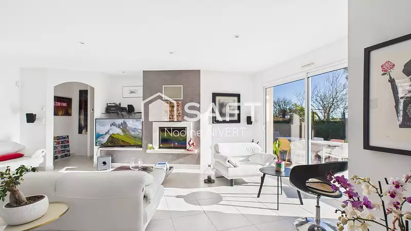 Édifiée en 2005 sur un terrain clos de 698 m² et sans vis-à-vis, cette maison d’environ 173 m² se compose d’une entrée, d’une spacieuse pièce de vie exposée plein sud et agrémentée d’une cheminée insert, ouverte sur une terrasse et un jardin paysager.