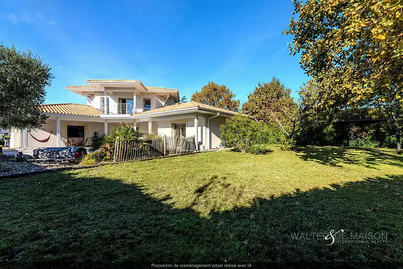 Lanton Immobilier by Walter et de MAISON (Agence locale et internationale) vous propose de venir découvrir cette magnifique villa d'architecte de 173 m² sur une parcelle de 1 100 m², située dans un quartier calme et résidentiel, à seulement 3 minutes à pied de la plage et du Port de Cassy. Grand jardin paysagé, vaste terrasse en bois partiellement couverte, et un spa de nage pour la détente et la nage. Vaste séjour lumineux avec sa grande baie à galandage et son poêle à bois. Cuisine moderne semi-ouverte avec cellier/buanderie. Au rez de chaussée 2 chambres dont une suite parentale (chambre 15 m² avec dressing ) et un bureau A l'étage 3 chambres donnant toutes sur une terrasse couverte avec vue. Garage attenant, carport, grand parking en résine drainante, et borne de recharge pour véhicule électrique. Chauffage au sol au gaz, fibre optique, Proche écoles et commerces Un bien rare alliant l'élégance du design et la proximité immédiate du Bassin d'Arcachon. Prix de vente : 893 000 euros HAI Honoraires : 3% charge acquéreur Prix net vendeur : 866210 euros Ne manquez pas cette opportunité unique. Contactez Brigitte LANNES pour planifier votre visite au 06 10 13 23 30