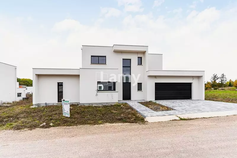 MARLY – Le GOLF DE MARLYLAMY vous présente cette sublime maison au cœur du Golf de Marly.C’est une maison neuve et bénéficie d’un taux réduit de 2,5% pour frais de notaire. Ce produit extraordinaire et rare à la vente, offrira une vue sur la noue du lotissement qui sera arborée, les baies de la pièce de vie sont orientées vers cette nature, et donne accès à un terrain de 8,25 ares. Sa superficie est de 173,58m² habitable + un garage et grand cellier/buanderie de 52,30m². Toutes les finitions de la maison sont terminées, du meuble d’entrée, aux magnifiques pièces d’eaux, ou encore les brises soleils. Elle se compose d’une grande entrée bénéficiant d’une belle lumière naturelle grâce à la baie sur double niveau qui habille la maison dès le début, d’un WC, puis d’un superbe espace de vie tout hauteur, ouvert sur une cuisine toute équipée avec électroménager SMEG de 72m². Une porte invisible permet d’accéder au garage et au cellier/buanderie de la maison. Le rez-de-chaussée bénéficie également d’une superbe chambre parentale avec son propre dressing et sa propre salle de douche et WC. Un sublime escalier habille également la pièce de vie, pour nous laisser accéder à une grande salle de bains et douche avec des finitions de très bons goûts, puis à 2 chambres spacieuses de plus de 15m² et d’un WC. Chauffage avec pompe à chaleur électrique. Pour plus de renseignements, vous pouvez contacter Marine FORSTER au 06 60 04 64 67 ou . Ville à proximité : à 15 minutes de METZ VILLE, moins de 10 minutes de AUGNY, LOUVIGNY, CUVRY, PELTRE, MONTIGNY-LES-METZ… Accès d’autoroute direction THIONVILLE et Luxembourg en 5 minutes. OPPORTUNITE RARE !