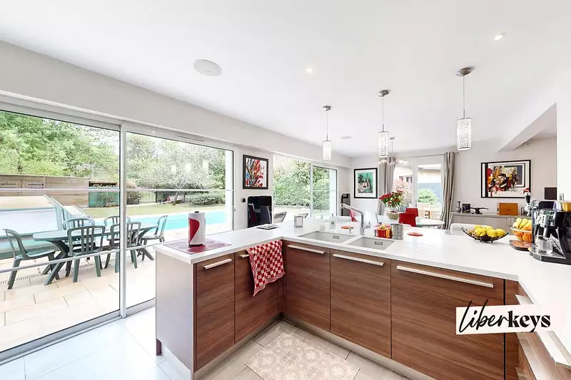 Liberkeys est ravie de vous présenter cette élégante maison d'une surface de 173 m², dans le secteur de Pessac Cap-de-Bos, proche du parc du Bourghail, reposant sur une parcelle de 1044 m² avec piscine chauffée et sécurisée.