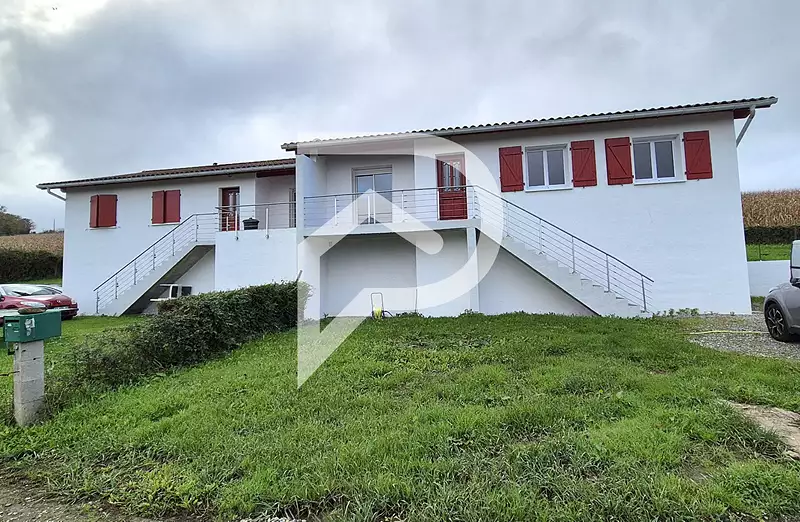 Dans village à proximité de SAINT PALAIS, ensemble immobilier composé de 2 maisons jumelées T4 (dont une actuellement louée), comprenant pour chacune, une cuisine aménagée ouverte sur séjour, 3 chambres, salle de bains, w.c, buanderie et garage en sous-sol. L'ensemble sur un terrain de 2000 m² environ, avec assainissement individuel neuf commun aux 2 logements. Roland PEREZ (EI) Agent Commercial - Numéro RSAC : 831 810 113 - PAU.