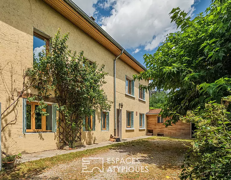 C'est à l'écart de la rue, dans un environnement apaisant et verdoyant que prend place cette ancienne ferme en pisé du XIXème siècle. Mitoyenne sur un côté, développant une belle surface à vivre de plus de 170 m², elle offre, dans un cadre privilégié et sans vis-à-vis, un habitat de qualité aux volumes généreux. Avec ses poutres et ses planchers bois, orientée sud-est et bénéficiant de nombreuses ouvertures, elle possède le charme des bâtis ancien tout en étant lumineuse. Accompagnée d'un terrain paysager d'environ 500 m², abritant une piscine entourée d'une terrasse en bois, elle est parfaite pour savourer les beaux jours et la vue sur le Vercors tout en restant à l'abri des regards. Une dépendance en ossature bois d'environ 15 m² complète l'ensemble. Passé l'entrée, le rez-de-chaussée s'ouvre sur une pièce de vie ensoleillée, prolongée par un petit salon. A l'opposé, se trouve une grande cuisine familiale, idéale pour recevoir, accompagnée de son cellier/buanderie. Une salle d'eau ainsi que des toilettes séparés sont également présents à ce niveau. L'étage, propose trois chambres confortables de belles dimensions. Complété par un bureau, des toilettes et quelques espaces rangements, il offre un espace nuit chaleureux et fonctionnel. Les combles, mansardés, présentent deux pièces en enfilade idéales pour une salle de jeu ou une suite parentale. A l'extérieur, le jardin expose une végétation généreuse et un esprit bucolique. La piscine, discrètement nichée entre les arbres, permet de profiter d'une vue sur les reliefs environnants. Une dépendance abritant la machinerie de la piscine permet le stockage des outils de jardin ou la création d'un petit atelier. Bénéficiant d'un emplacement privilégié et verdoyant, tout en étant proche des commodités du village et des écoles, ce bien singulier sera un lieu de vie authentique et lumineux entre nature et patrimoine. Nécessitant quelques améliorations intérieures pour révéler pleinement son potentiel, il séduira les amateurs d'habitats traditionnels en quête d'espaces préservés. Taxe foncière : 953 euros CLASSE ENERGIE : E / CLASSE CLIMAT : D. Montant moyen estimé des dépenses annuelles d'énergie pour un usage standard, établi à partir des prix de l'énergie de l'année au 01/01/2021: entre 3370 euros et 4620 euros Les informations sur les risques auxquels ce bien est exposé sont disponibles sur le site Géorisques : www.georisques.gouv.fr Contact : Patrick Lavandier (E.I) - 06 10 56 55 90 Agent commercial indépendant RSAC Grenoble 521 324 152 Patrick LAVANDIER (EI) Agent Commercial - Numéro RSAC : 521324152 - Grenoble.