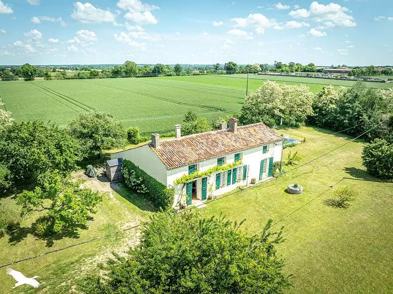 Entre Surgères et Rochefort. Charentaise composée d'une entrée, cuisine dinatoire, double salon, 4 chambres et une salle de bain. Piscine sur terrain arboré de plus de 7 000m². Travaux à prévoir
