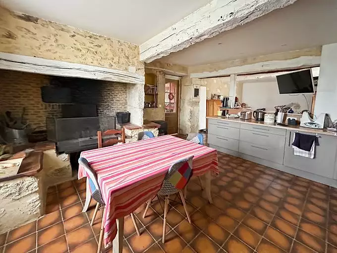 Géographiquement bien située, cette maison ancienne offre près de 170 m² de surface habitable potentielle sur 2 niveaux. Entrée/couloir, bureau ou chambre, dressing, cuisine meublée et semi-équipée, salon, salle de bains et wc de plain pied. A l'étage, vaste palier de près de 30 m² desservant la partie nuit avec 3 belles chambres, pièce d'eau à terminer et 25 m² de surface à exploiter. Les extérieurs, joliment paysagé avec appenti attenant à l'habitation permettant une extension de l'habitat, un bel abris bois de 30 m² sur dalle béton, garage attenant à la maison de plus de 55 m², agréable terrasse bois aménagée pour les soirées d'été. Un bel ensemble avec travaux à prévoir, aux abords d'un joli petit village, sur un terrain arboré de plus de 1000 m².