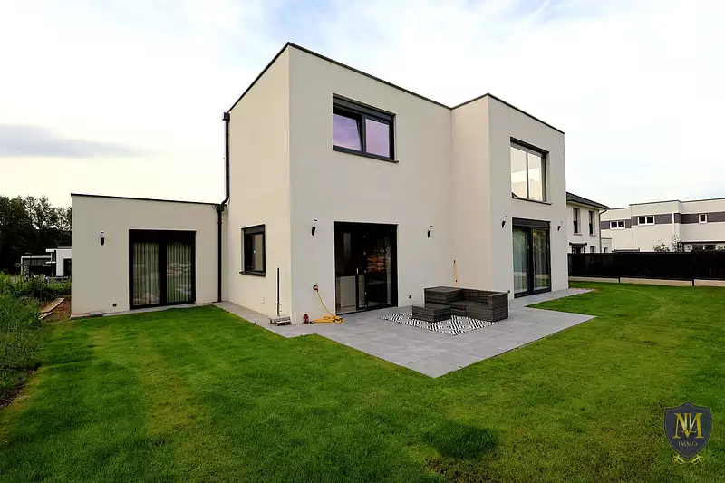 Proche de la frontière et au calme sans vis-à-vis, très belle maison contemporaine sur vide sanitaire année 2021 aux prestations de qualité de 174 m2 habitables, comprenant : une entrée, une cuisine équipée ouverte sur un lumineux salon séjour avec cheminée donnant sur une terrasse plein sud, un cellier, une suite parentale avec dressing + une salle d'eau équipée/wc, un bureau/chambre, une mezzanine, 3 chambres et une salle d'eau équipée. À l'extérieur un double garage et 2 places de parking complètent ce bien. Le tout sur un terrain de 5,59 ares.