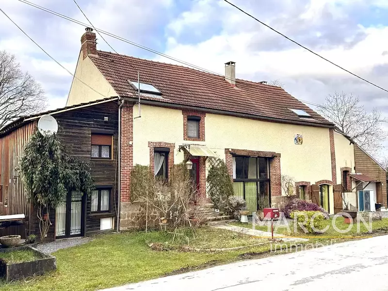 REF 88810. Secteur BONNAT. Belle maison de campagne avec sa grange réaménagée en habitation d'une surface totale de 175 m² offrant de beaux volumes de pièces à vivre.