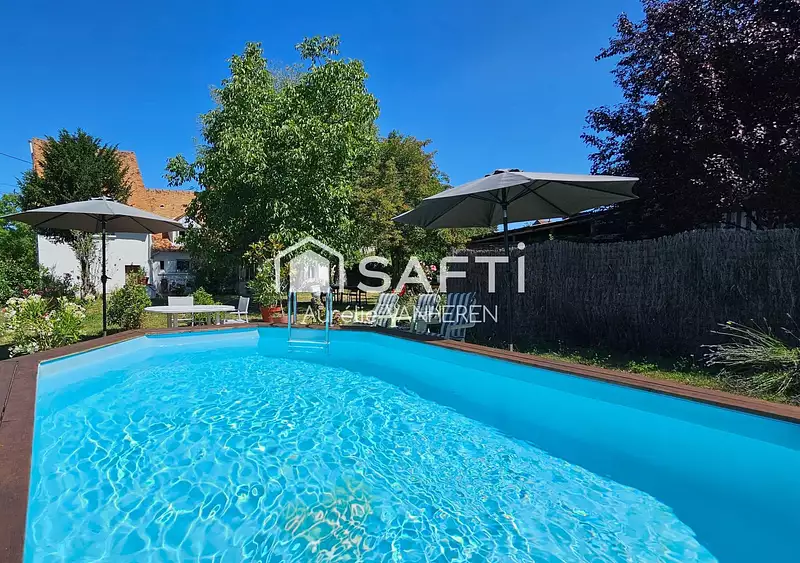 À l'extérieur, cette maison bénéficie d'un jardin paysager parfaitement entretenu et piscine semi enterrée chauffée, véritable havre de paix pour se détendre en famille ou entre amis. Le garage et les places de stationnement extérieure offrent une solution pratique pour le stationnement des véhicules.